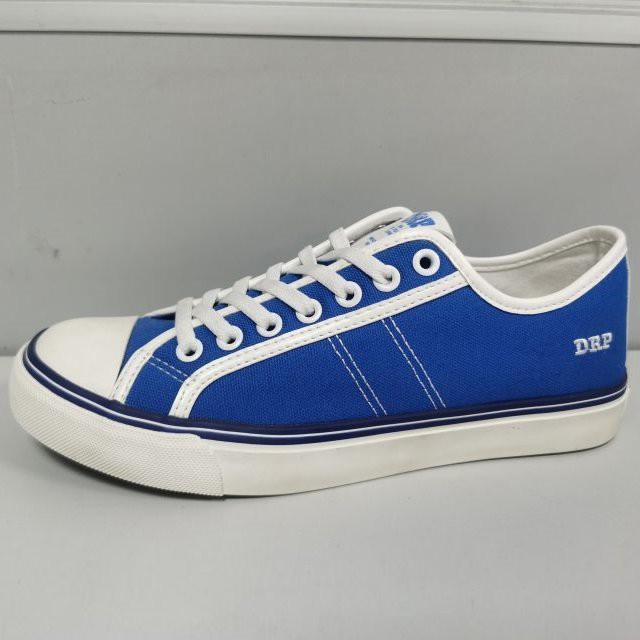 1, skinnende blåt lærred med hvidt PU-rør, blonder og syninger gør kvinders lærredssko enkle, men pæne.